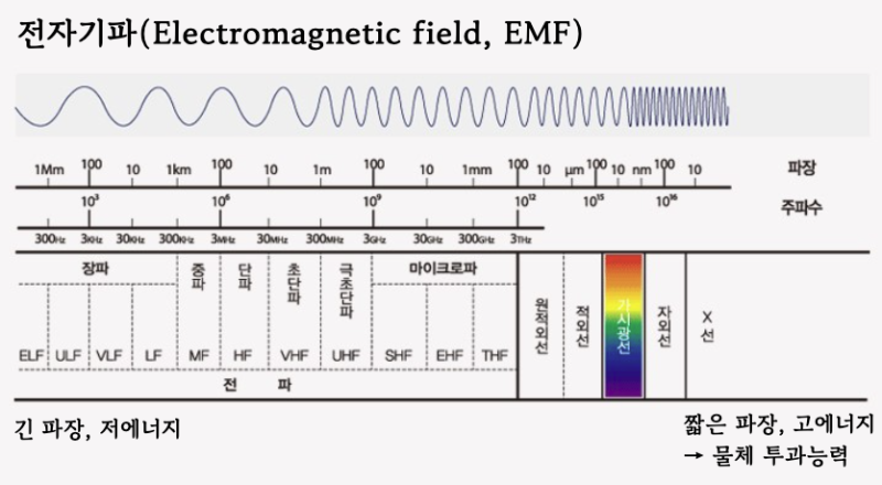 ✔️ 서두의 사과 예시로서 살펴본 것 처럼, 일반적으로 물체를 통과하지 못하는 가시광선 영역의 빛은 물체의 표면적 특성에 대한 정보만을 제공할 뿐입니다. 하지만, 그보다 큰 에너지를 가지는 빛(전자기파) X ray는 물체를 관통할 수 있는 에너지 특성을 가지고 있습니다.