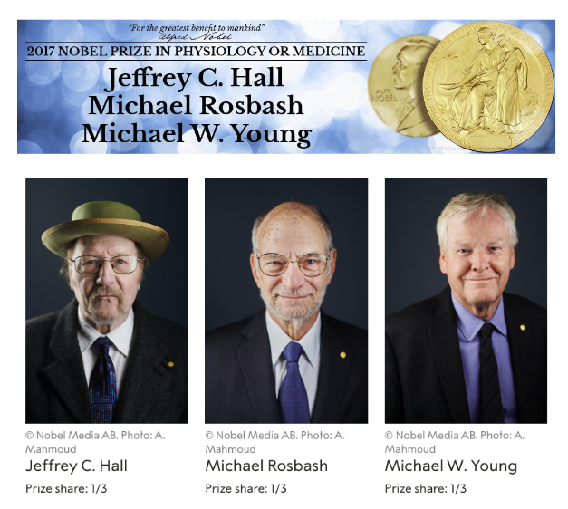 이들은 초파리에서 DNA의 특정 유전자 부위에 돌연변이를 유발하였을 때 기존의 24시간 주기를 나타내던 초파리의 특정 운동 현상이나 번데기 부화 현상이 19시간이나 28시간 등의 주기로 변화함을 발견하였습니다. 즉 이들은 생체시계가 유전자에 의해 조절되는 현상이라는 것을 실험적으로 증명한 것입니다.