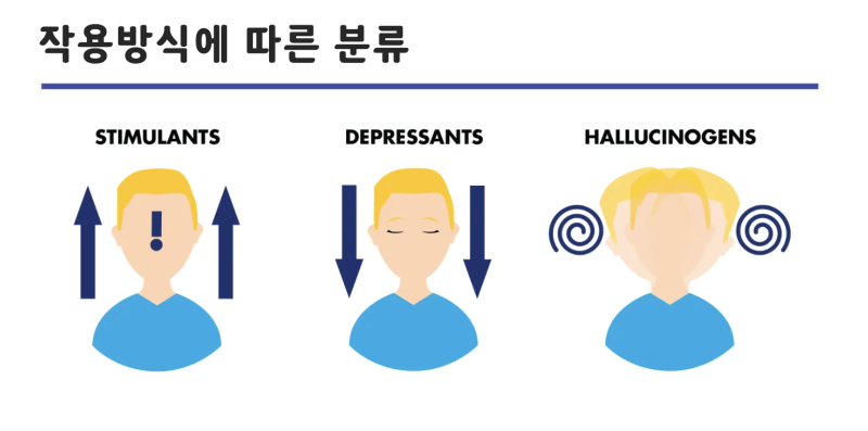 ✔️ 다음으로 관습적으로 사용되는 '마약'이라는 개념을 중추신경계의 기능을 변화시킴으로써 인식, 인지, 기분, 행동을 변화시키는 정신작용물질(Psychoactive drug)으로 설명할 수 있습니다.