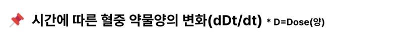 ❗️ 우리는 위의 경구투여시 시간에 따른 혈중 농도 식을 정의하기 위해 가장 먼저 경구투여시 '시간에 따른 혈중 약물 양(Dose)의 변화'를 식으로서 나타내어야 합니다. 즉 이는 dD(t)/dt에 대한 식이 됩니다.
